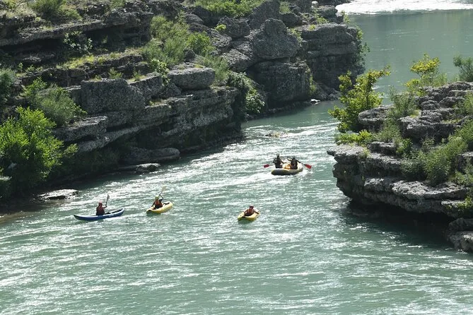 Rafting Osumi Canyon was colder than I expected — water straight from glacier melt will do that — but you forget about your toes when you’re staring up at those cliffs. Our guides kept us laughing between rapids, telling legends about the Love Waterfall (I won’t spoil it). After lunch back in Berat (eggplant stew this time), we crashed early. The next day brought kayaking on the Vjosa River at Këlcyrë Gorge. They suited us up in neoprene and helmets; I looked ridiculous but nobody cared. Paddling through those canyons felt like being inside a painting — blue water, green walls, birds everywhere.