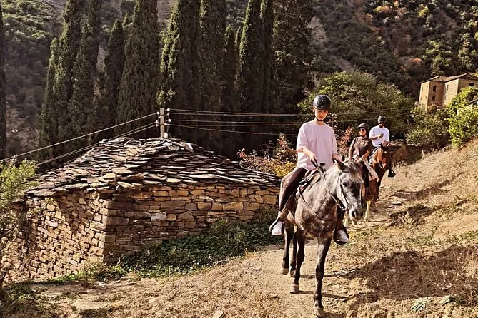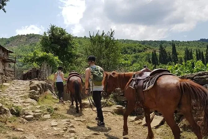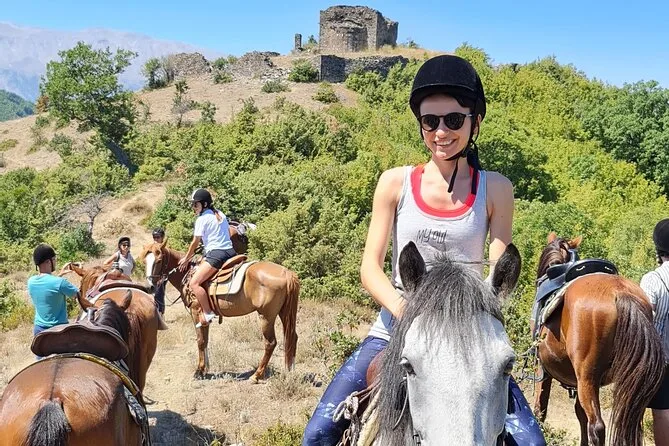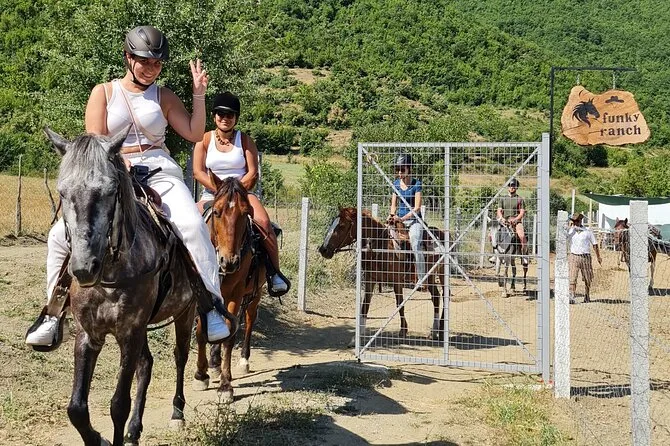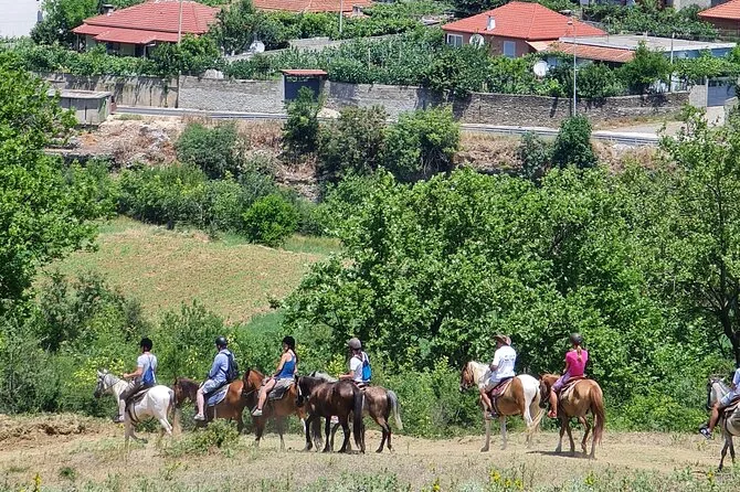 Your day includes pickup from town by air-conditioned vehicle, gentle horses matched to your skill level with safety helmets provided by your guide Ardit or another local expert; stops in traditional villages with time to explore old churches; fresh fruit, cookies and either local wine or soft drinks along the way; plus entry to soak in nearby thermal baths before returning home relaxed (and maybe still smelling faintly of minerals).
