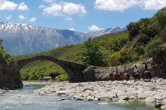 You’ll ride gentle horses along the wild Vjosa river, explore quiet stone villages with a local guide, pause for snacks and homemade wine by Lengarica canyon, then relax in natural thermal baths near Permet. Expect laughter, mountain air, maybe sore legs — but mostly that rare feeling of being part of somewhere new.