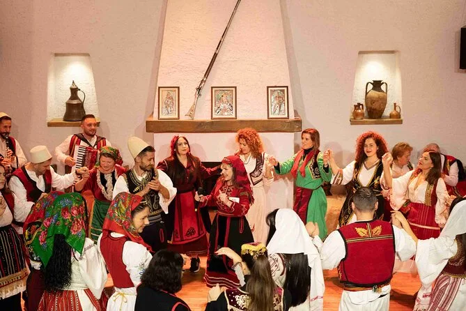 The experience includes a traditional dance and music show plus an optional seven-dish dinner featuring specialties from different regions of Albania.
