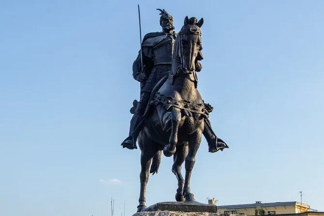 The route passes near Skanderbeg Square as part of exploring central Tirana landmarks.