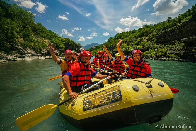The rafting itself takes about 2.5 to 3 hours, plus a 35-minute drive each way from the rafting base near Gjirokastër.