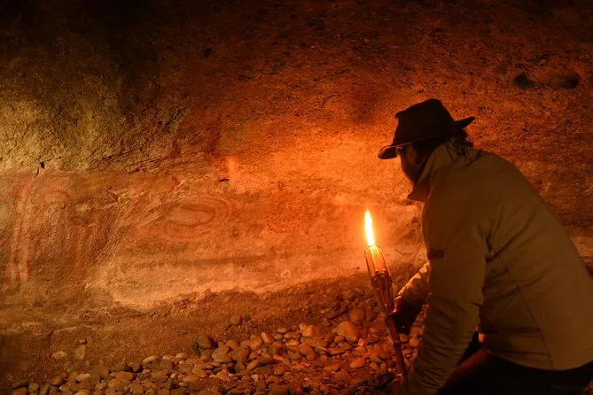 Your day includes pickup from your hotel in El Calafate by 4x4 vehicle, entrance fees to Punta Walichu archaeological site where you’ll see ancient cave paintings with your local guide’s interpretation, plus a full meal—pumpkin soup, lamb casserole baked into bread (or special dietary options), chocolate mousse and drinks—all served inside a lakeside cave before heading back.