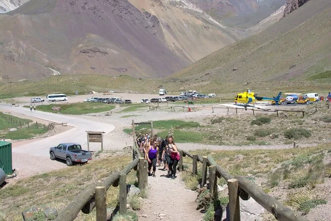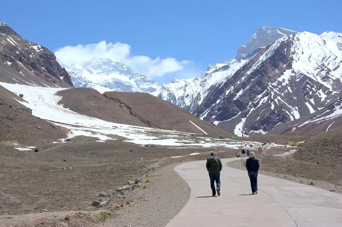 Your day includes round-trip transportation from Mendoza with pickup by a bilingual local guide, technical stops for snacks with tea or coffee and pastries along the way, entry permit assistance for Aconcagua Provincial Park (entrance fee extra), a short guided walk to Laguna de Horcones viewpoint beneath South America’s highest peak, plus a hot regional lunch served at a cozy mountain parador before heading back down through valleys and villages toward evening.