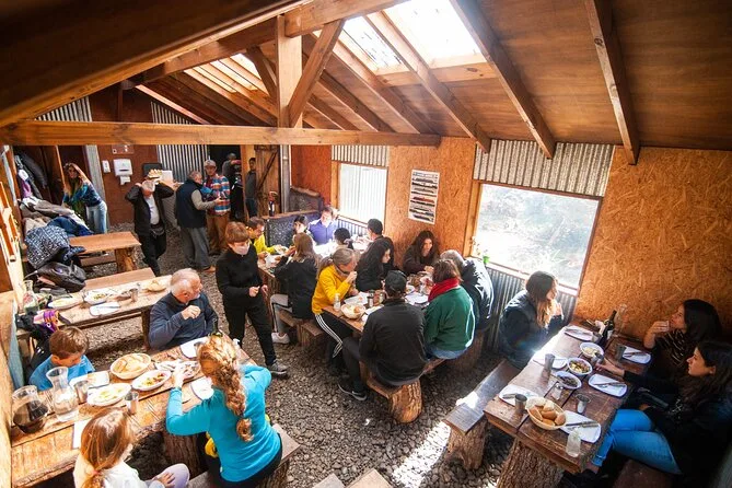 Your day includes hotel pickup and drop-off in Ushuaia city, bottled water throughout the journey, snacks along the way, alcoholic beverages including local wine at lunch (for those over 18), coffee or tea at stops, all local taxes covered by your guide team, plus a hearty two-course asado lunch served warm inside a forest shelter before heading back toward town together.