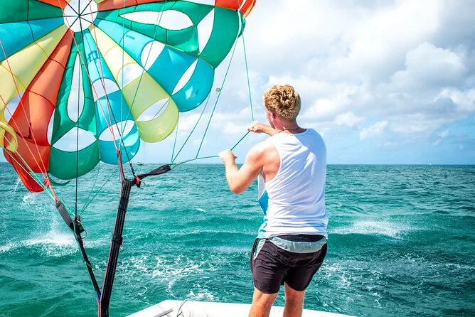 Your day includes use of all necessary parasailing equipment and a 12-minute ride high above Aruba’s northern coast after checking in right on Noord Beach between Hilton and Barcelo resorts; everything’s set up so you just show up ready for adventure.