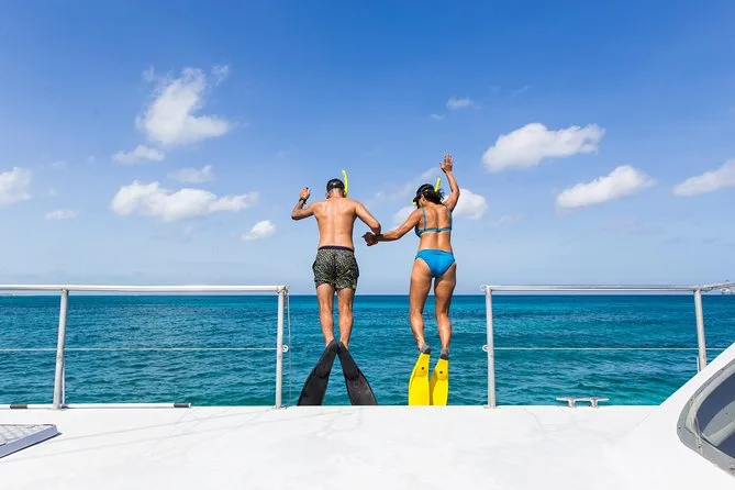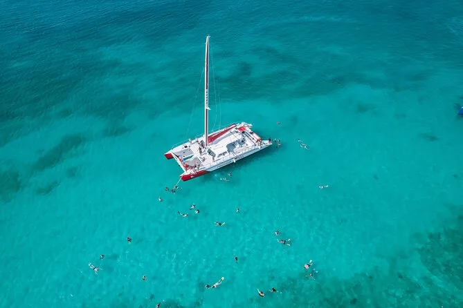 Your half-day includes use of snorkel gear with instruction if needed, three distinct snorkel stops at Catalina Bay, Antilla shipwreck, and Malmok Bay—all from a luxury catamaran—with morning snacks served before a full Caribbean lunch buffet plus an open bar stocked with cocktails and soft drinks. Hotel pickup can be arranged from most major hotels outside walking distance; just bring your swimsuit and towel along for the ride.