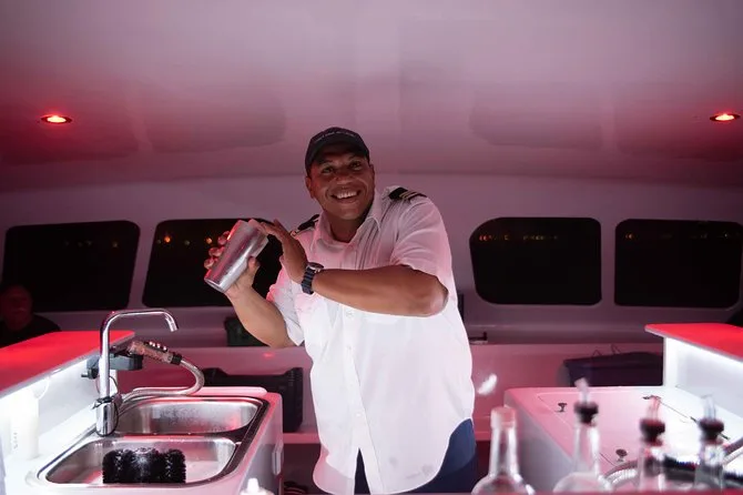Your evening includes sailing aboard a luxury catamaran from Palm Beach toward Aruba’s lighthouse with plenty of space to relax or dance, bite-sized appetizers served fresh onboard, an open bar featuring local beer and cocktails throughout your journey, plus lively music and stories from your Aruban crew before returning as night falls.