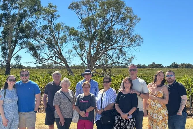 The tour is a full-day experience departing from Adelaide with multiple stops including wineries and Hahndorf village.