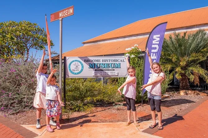 After that, we rolled into the Broome Historical Museum — air con blasting (thank god). Our guide, Li, pointed out these old black-and-white photos of pearl divers and told us about how Broome used to be this wild mix of people chasing fortunes or running from something. There’s a room with dinosaur footprints cast in concrete; I touched one when no one was looking. The place smells faintly like old paper and floor polish. Kids were giggling at some WWII radio exhibit. It felt like you could spend hours poking through drawers of postcards and stories.