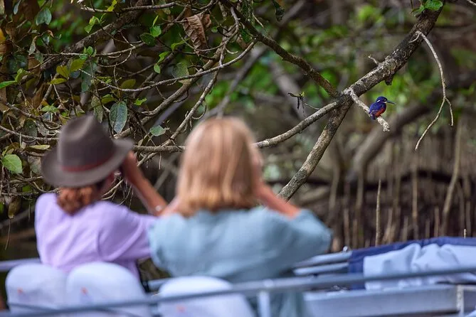 The boat itself was smaller than I pictured (just ten of us), but it glided so quietly thanks to that electric motor — you could actually hear the wings when a kingfisher shot past. Murray pointed out a frogmouth perched so still it looked fake, then later spotted a crocodile half-submerged along the bank. He told us about each bird by name — I still remember “azure kingfisher” because he said it twice after I asked if it was really blue or just looked blue in this light. The sun started to break through mist over the water, turning everything gold for about five minutes. My jacket got damp from leaning over too far, but honestly, who cares when you’re watching herons stalk through reeds like tiny dinosaurs?