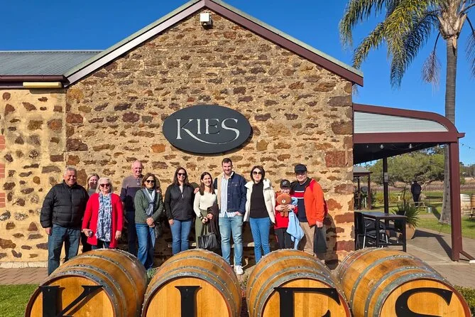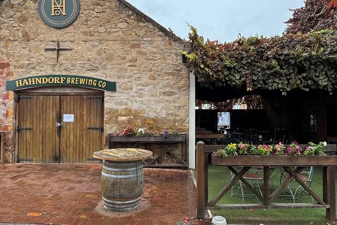 The tour is a full-day trip from Adelaide City including multiple stops such as Hahndorf village and several locations in Barossa Valley.