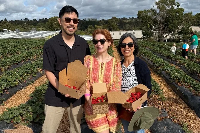Your day includes round-trip transport from Adelaide City with an English-speaking guide, entry fees for strawberry picking at Beerenberg Farm (pay only for what you pick), two guided boutique wine tastings in Barossa Valley plus a gourmet regional lunch with vineyard views—and plenty of time to sample chocolates or relax by Maggie Beer’s scenic pond before heading back home.