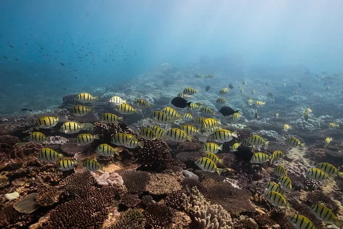 The boat — “Immersion” — is quick, almost too quick at first if you’re used to slow ferries like I am. Spray in your face, wind tangling your hair, that salty smell everywhere. We reached the first snorkel spot before I’d even finished my nervous snack (they hand out fruit and something sweet). Sliding into the water was colder than I thought but kind of thrilling; Dan pointed out a green turtle right away and I swear it looked straight at me before gliding off under a patch of purple coral. There were these moments of total silence underwater except for your own bubbles — weirdly peaceful.