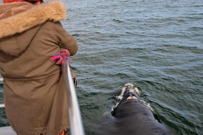 The exact duration isn’t specified but expect several hours on the water observing whales.