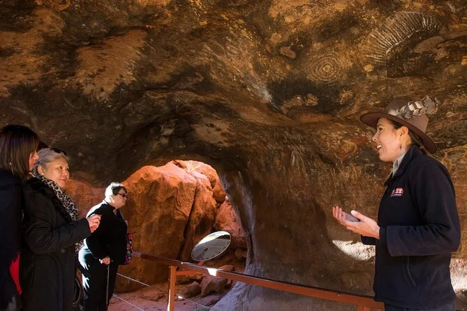 Your guide shares Creation stories of Kuniya (woma python) and Liru (venomous snake) plus other Tjukurpa tales.