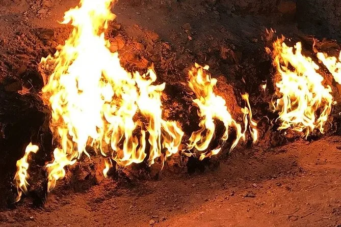 You’ll visit Gobustan mud volcanoes, Gobustan petroglyphs, Bibi-Heybat Mosque, Ateshgah Fire Temple, and Yanardag (Burning Mountain).