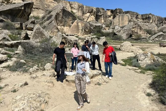 You kind of wake up on the road out of Baku — the city’s glass and steel fading behind you, the Caspian wind sneaking in through the window. Our guide, Emin, pointed at a dusty hill and said “Gobustan is older than most countries.” I didn’t know what to expect from this day trip from Baku to Qobustan and Absheron — but walking between those ancient petroglyphs, you feel it. The rocks are rough under your hand. Some smell faintly like rain on stone (it had rained last night). Emin told us stories about hunters and dancers scratched into the walls thousands of years ago. I tried to imagine life here before cars or even roads — just sky, wind, and those carvings.