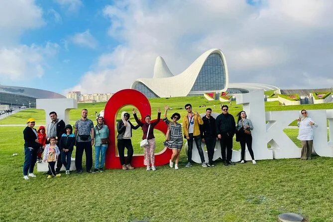 We finished outside the Heydar Aliyev Center as dusk set in — that wild curve of white concrete against a pink sky. People were taking photos but honestly I just wanted to sit for a second and let my brain catch up with everything we’d seen. Days like this don’t really fit into neat boxes; they stick with you in pieces — smells of earth and fire, laughter over lunch, a bit of ancient silence you carry home.