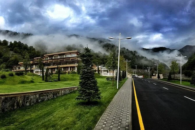 Your day includes pickup in Baku by air-conditioned minibus with an English- or Russian-speaking guide, all site entry fees including Juma Mosque, a three-course lunch at a forest restaurant in Ismayilli (with vegetarian options), guided cable car ride in Gabala, dessert tasting at House of Sweets with tea ceremony, time at Lake Nohur and Seven Beauties Waterfall before returning in comfort late afternoon.