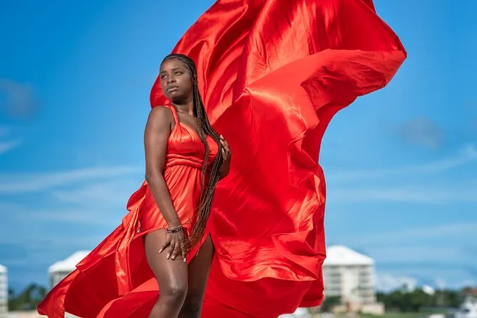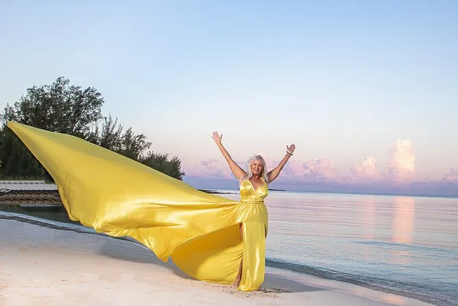 You’ll step onto a Bahamas beach, slip into your chosen flying dress (sizes up to 3x), and let a local photographer guide you through an easygoing one-hour shoot. Expect laughter, salty air, simple direction — plus ten edited photos sent digitally within a week or so. You might come for pictures but you’ll leave feeling lighter than you arrived.