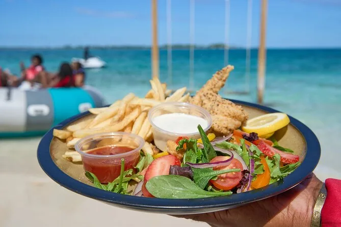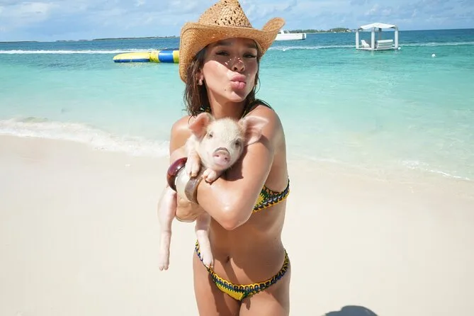 Your day includes pickup right beside Nassau's cruise port (just 7–10 minutes from Atlantis), all pig feed for meeting the famous swimming pigs at Pig Beach, unlimited rum punch plus snacks and soft drinks throughout the day, use of kayaks and paddleboards if you want some adventure on the water, full access to snorkeling equipment for exploring those turquoise shallows, comfy lounge chairs under palms, swings facing Rose Island views—and every guest gets a complimentary photo and video package so you don’t have to worry about missing any moments before heading back sun-kissed (or maybe just a little sunburned).