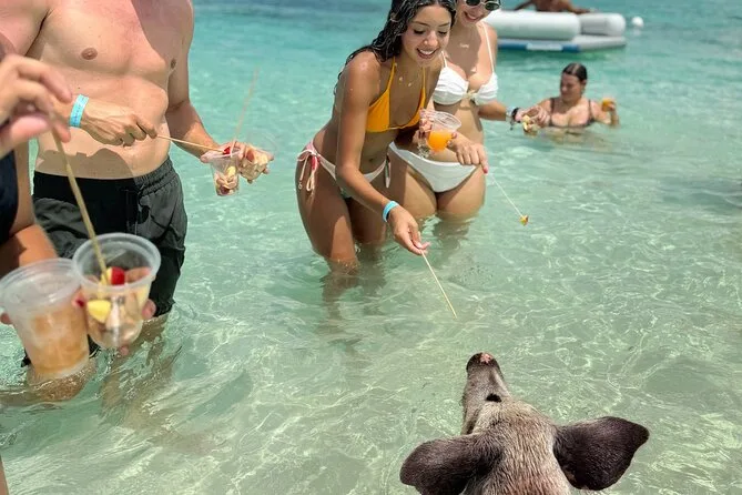 You’ll feed swimming pigs on Pig Beach near Nassau, snorkel or float in clear turquoise water, play beach games with new friends, and sip unlimited rum punch under palm trees—all with easy cruise port pickup included. Expect laughter, sandy toes, and that rare feeling of being completely present in paradise.