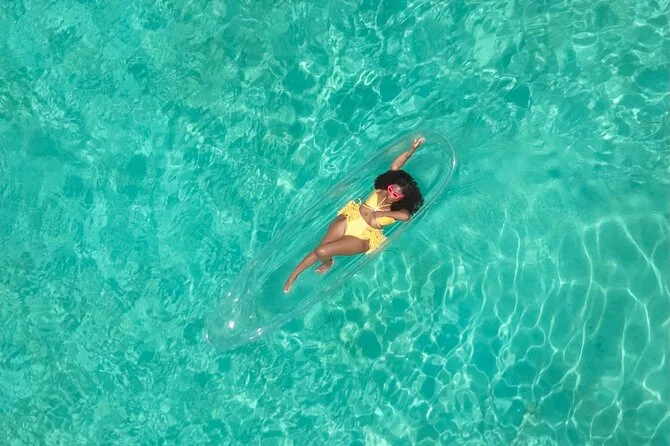 Your experience includes use of a clear kayak with life jackets provided for safety. A professional drone pilot captures your session with six edited photos and one video delivered within 24-28 hours. All raw files can be requested if you want extras—and everything takes place just minutes from Nassau’s cruise port.