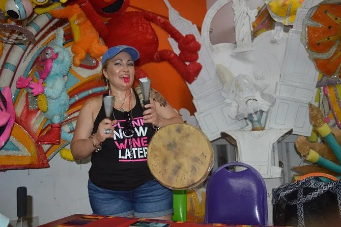 You’ll actually join in—try on costumes and play instruments during a live Junkanoo session.