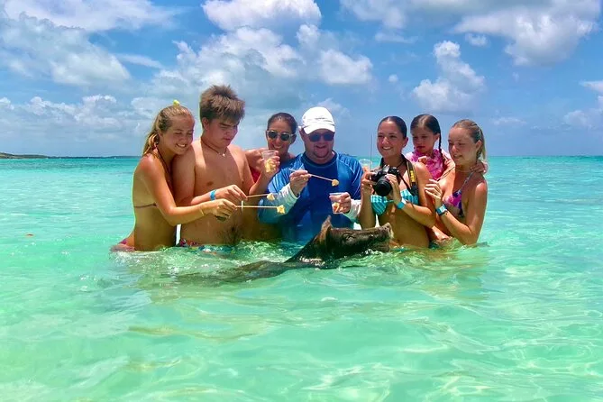 Your day includes optional hotel or cruise port pickup in Nassau, all entry fees and taxes covered up front, access to shaded seating and restrooms at a private beach club on Rose Island, a Bahamian lunch with one soft drink per person, use of snorkeling gear and paddle boards if you want them, plus plenty of time meeting swimming pigs before cruising back in the afternoon.