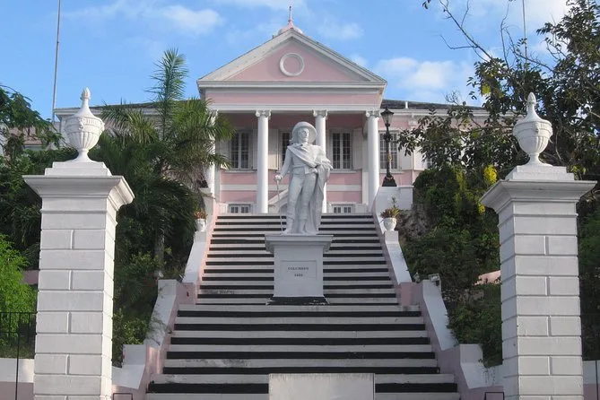 The tour visits Queen's Staircase, Fort Fincastle, Government House, National Art Gallery of the Bahamas (NAGB), Rawson Square and the Straw Market.