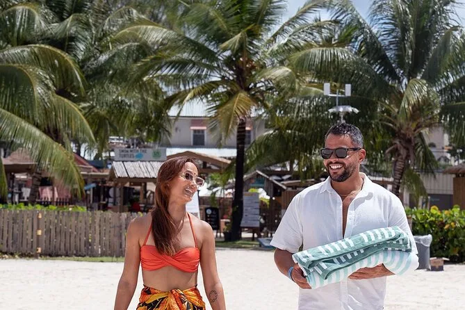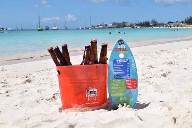 You’ll settle into Carlisle Bay’s soft sand with your own reserved beach chair and shared umbrella—no scrambling for space or shade. Let the Caribbean breeze wash over you as locals pass by with drinks and laughter drifts along the shore. This isn’t just a beach day; it’s a slow exhale you might remember long after you’ve brushed off the sand.