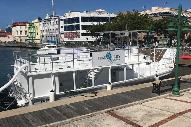 The cruise departs from The Careenage dock in Bridgetown, Barbados.