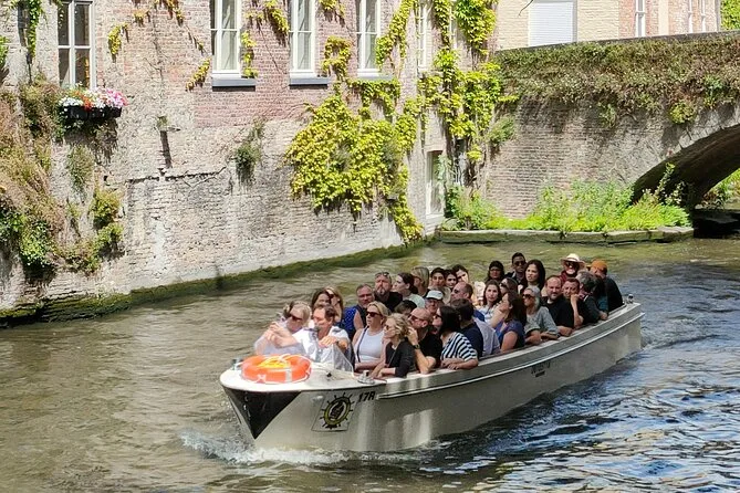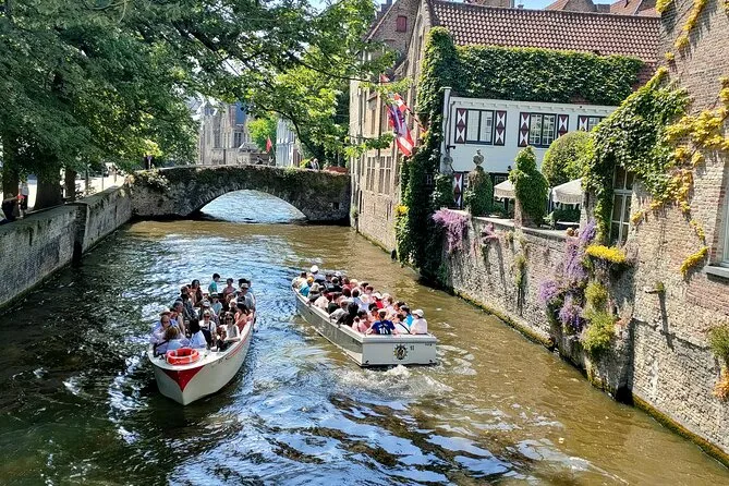 Your day includes a guided walk through historic Bruges with stops at landmarks like Markt Square and Bonifacius Bridge, a half-hour shared canal boat trip narrated by your captain, Belgian chocolate tasting along the way, plus a handy city map from your guide before you head off on your own again.