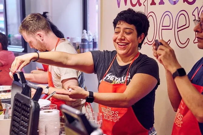 The exact duration isn’t specified but covers beer tasting and a full waffle baking session.