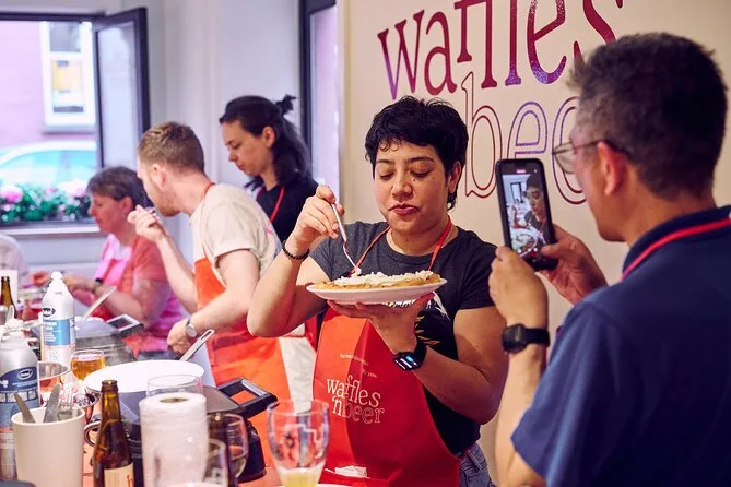 You’ll taste three Belgian beers (or non-alcoholic drinks), pick your favorite for your own waffle batter, then get hands-on baking in a lively Bruges kitchen. With expert guidance and unlimited toppings, you’ll eat as many fresh waffles as you want — all paired with your chosen brew. Expect laughter, new friends, and some flour on your shirt.
