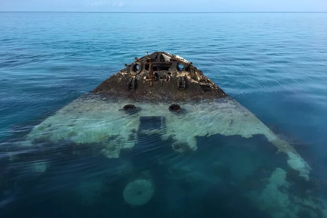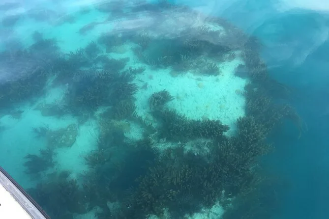 Then came the HMS Vixen shipwreck. I thought it’d be creepy but it was more… curious? The story behind why it’s there is apparently hilarious (Mark wouldn’t spoil it until we were right above). Everyone pressed closer to the glass — you could almost touch the old iron bones under all that water. On our way back, we paused near some sea grass beds and actually spotted two turtles poking their heads up. One of them lingered long enough for everyone to scramble for their phones, but I just watched — sometimes photos don’t really catch what you feel in that moment, you know?