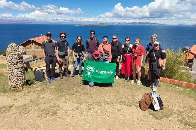 Your day includes hotel or hostel pickup within central La Paz, guided bus transport all the way to Copacabana with stops like Tiquina Mirador viewpoint along Lake Titicaca’s edge, roundtrip boat tickets out to Isla del Sol’s Yumani port and back again, plus drop-off when you return late at night.