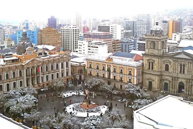 Your day includes walking with a knowledgeable local guide through central La Paz’s landmarks and markets plus several cable car rides across town; all operated rain or shine so just dress accordingly before meeting up at San Francisco Church.