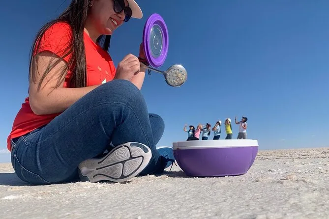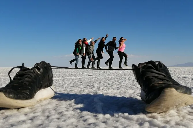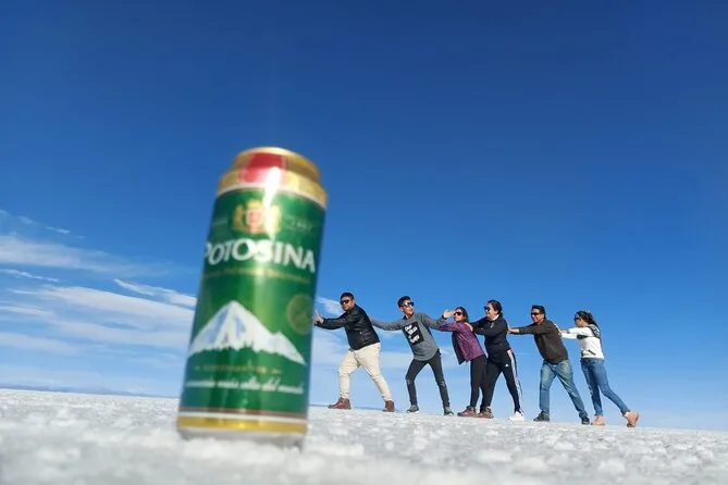 You’ll ride across Uyuni’s vast salt flats by 4x4, explore rusted trains at sunrise, taste local salt at Colchani, eat lunch on endless white hexagons, then slip on boots for sunset’s famous mirror effect—with wine and snacks as sky and earth blur together.