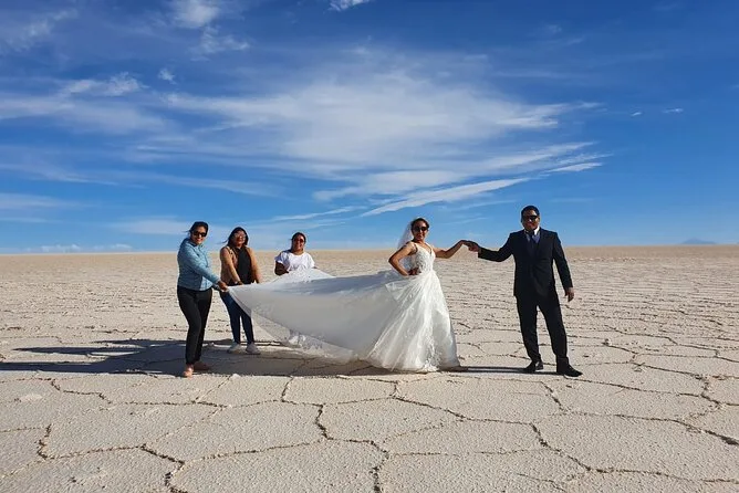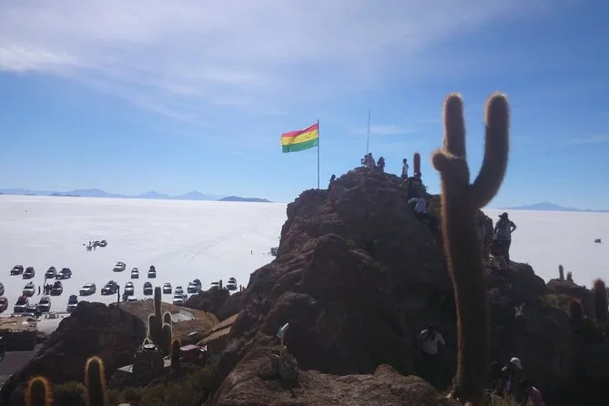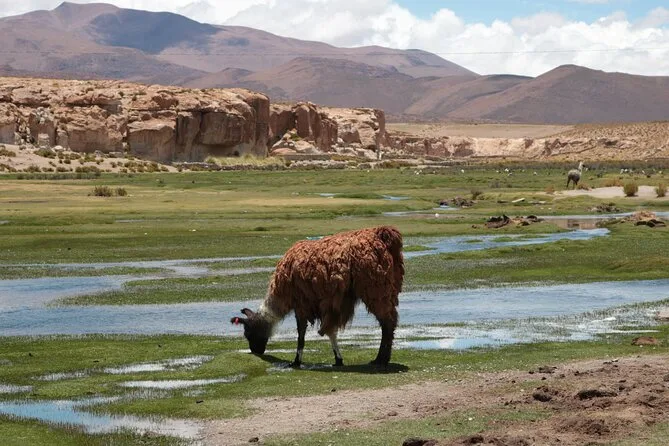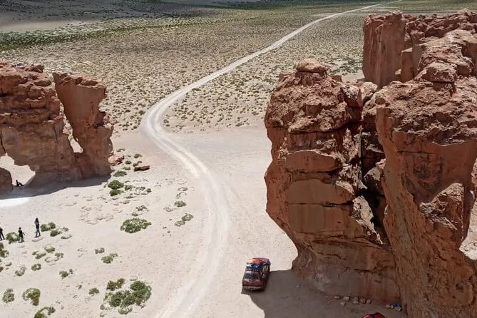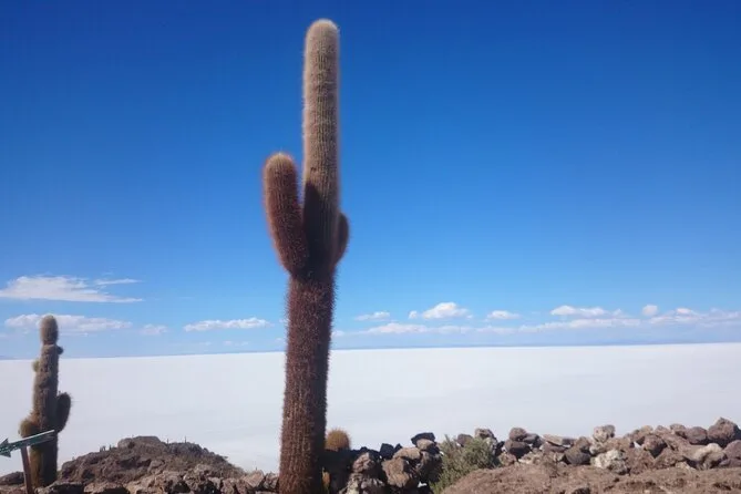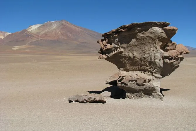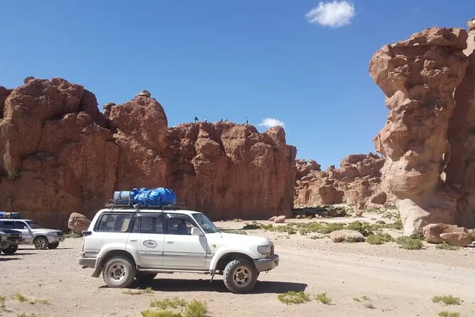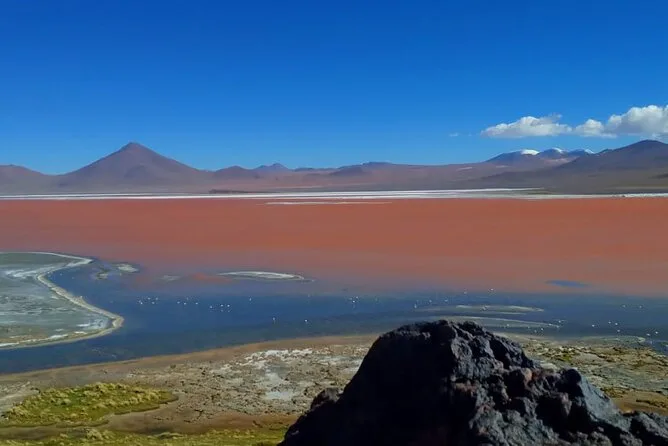 Your three days include transport by 4x4 Land Cruiser driven by an English-speaking local guide; two nights’ accommodation (one night at a salt hotel with private bath near Salar de Uyuni and one night near Laguna Colorada); all meals (breakfasts, lunches—including llama steak or vegetarian options—and dinners); entry fees; oxygen tank on board; plus time for perspective photos on the flats and relaxing soaks in Polques hot springs before heading back or onward into Chile.