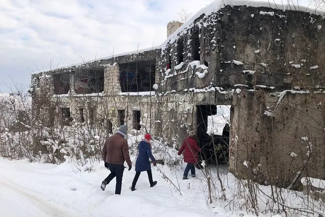 The itinerary includes Sniper Alley, memorials for children killed during the siege, Trebević Mountain with its Olympic bobsleigh track, and the Jewish Cemetery.