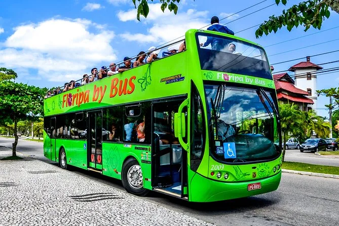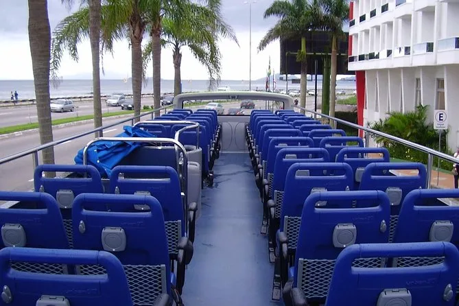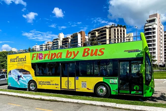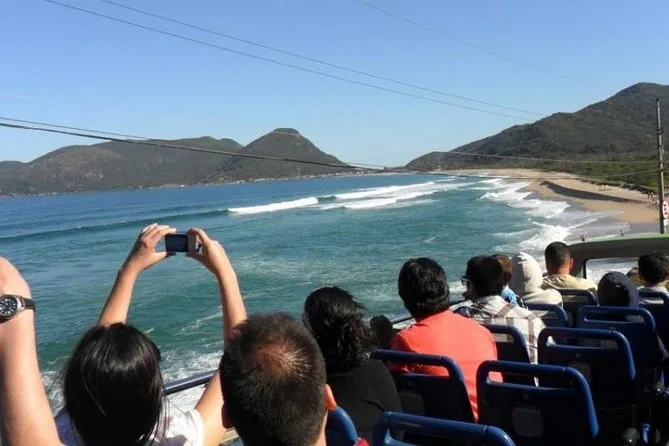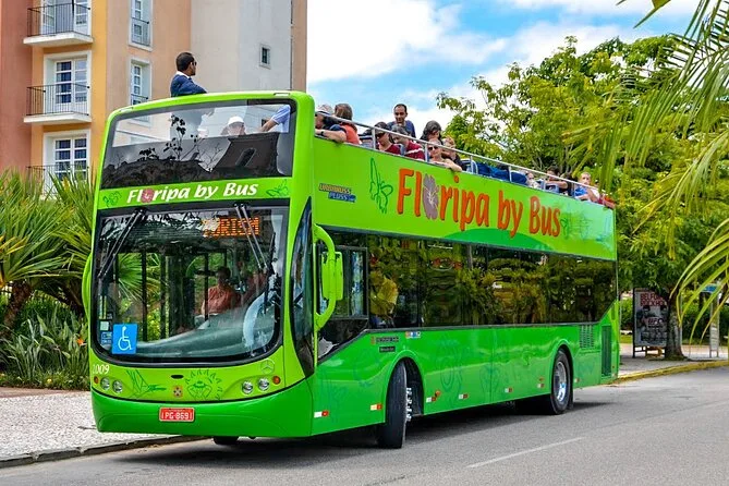 Your day includes guided commentary throughout by a local expert, travel on an open-top city bus with flexible boarding options at Villa Romana shopping (other points available via WhatsApp), several stops including Joaquina Beach and Jurere Internacional plus time in Florianopolis’ historic center—with plenty of chances to hop off for snacks or photos before finishing at Shopping Iguatemi in late afternoon.