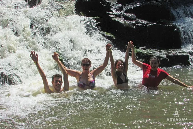 Wear light clothing with sun protection, quick-drying fabrics, sturdy sneakers (they’ll get wet), and bring extra clothes to change afterward.