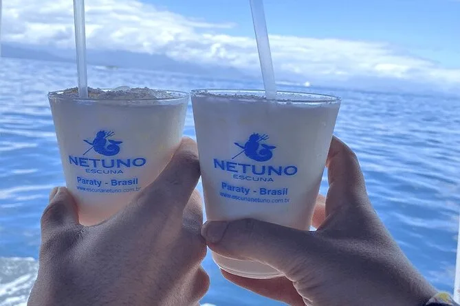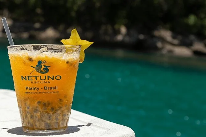 Cocktails are available for purchase separately; caipirinhas made with local Paraty cachaça are offered.