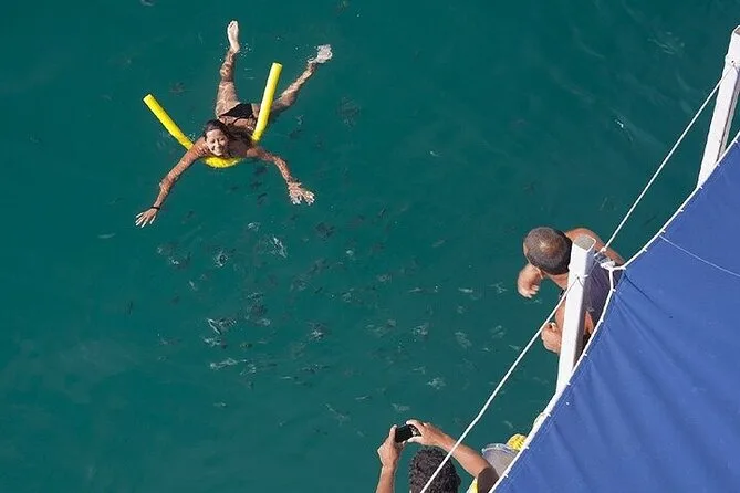 The first stop was an island with water so clear you could see every flick of a fish’s tail. I hesitated before jumping in—cold at first, then perfect. Someone handed me a snorkel mask (included in the tour), and suddenly I was floating above rocks and little flashes of color. João pointed out a starfish; I tried to say its name in Portuguese and got it wrong, which made everyone laugh. After that we drifted to another beach where some folks stayed on board for caipirinhas (extra cost) while others swam again or just lay back in the sun.