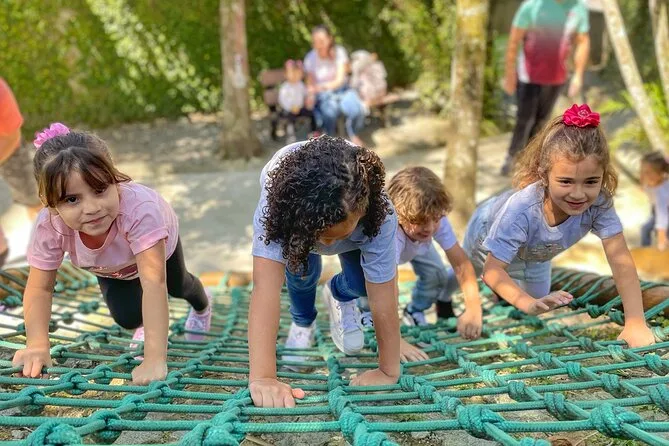 Your day at Vila Encantada includes entry to all attractions across the park—games, climbing areas, educational exhibits—and full access to amenities like family bathrooms and an on-site cafeteria; everything is designed for families of all ages and mobility levels to enjoy together from start to finish.