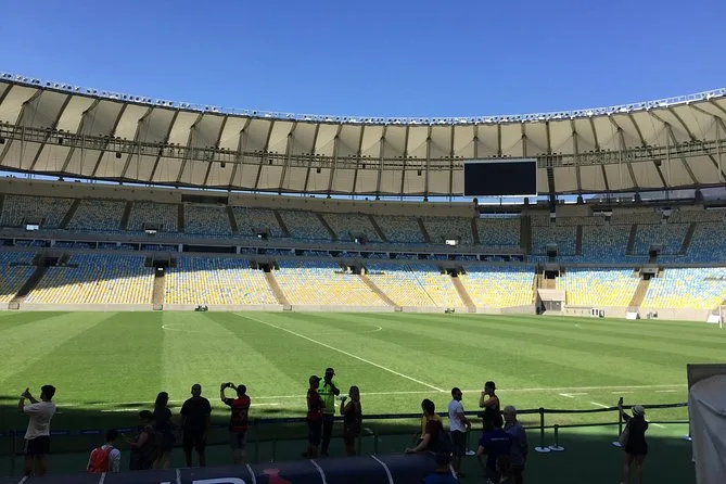 We crossed over to Niterói for the Contemporary Art Museum—Oscar Niemeyer designed it to look like a flying saucer hovering above Guanabara Bay. The view back toward Rio is wild; you can see Sugarloaf poking up in the haze. Maracanã Stadium came next—Lucas told us Pelé scored his thousandth goal here (he even showed us where). I’m not a huge soccer fan but standing in those seats felt pretty special.