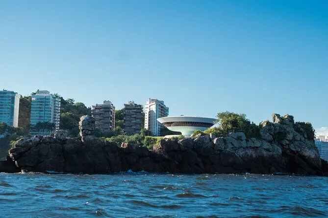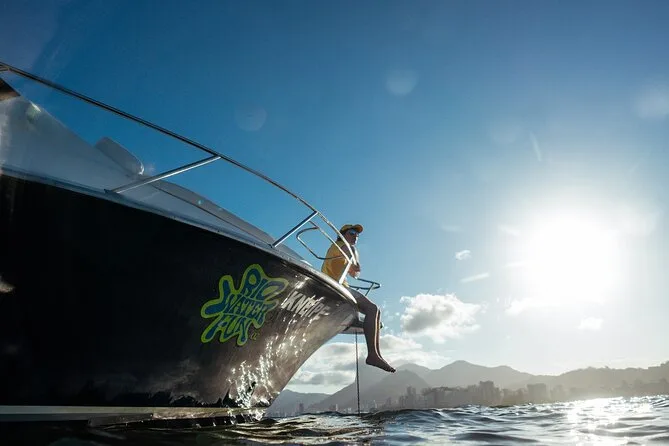 Your evening includes all snacks and bottled water onboard plus beer for those who want it. You’ll have an English or Spanish-speaking local guide leading you through Guanabara Bay with stops for swimming and photo ops near landmarks like Sugarloaf Mountain and Niterói Contemporary Art Museum before heading back as night falls over Rio.