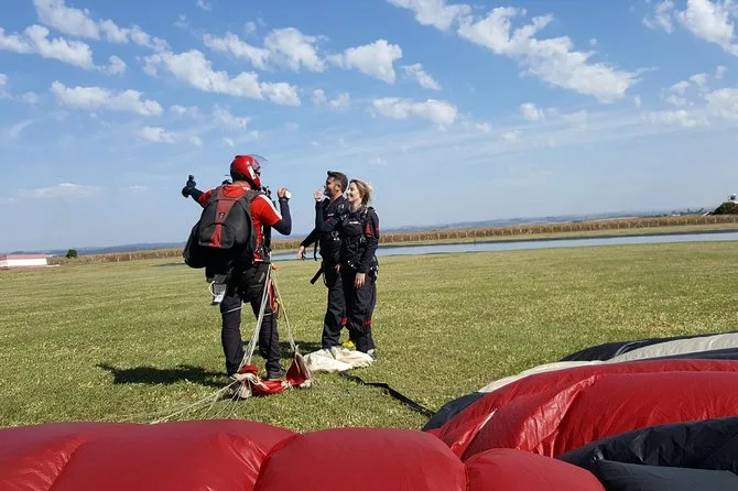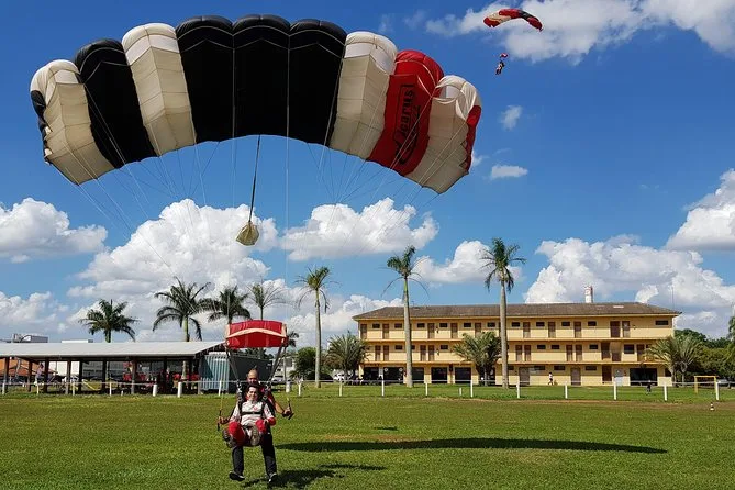 Your day includes boarding passes for an ANAC-certified scenic flight over São Paulo, all necessary jumpsuit and safety equipment rental, plus a pre-jump briefing led by an instructor certified by the Brazilian Skydiving Confederation before your tandem jump—and you land right by the school afterwards.